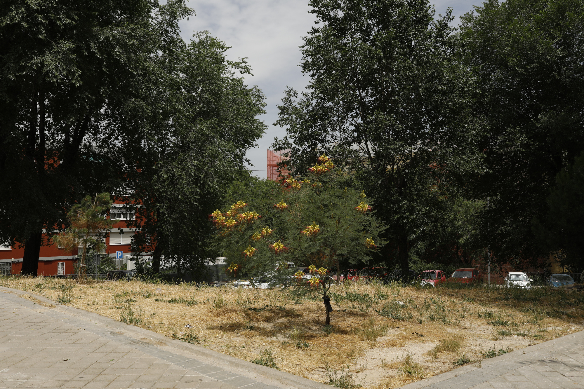 Justo detrás del jardín de la comunidad destacaban unos árboles en un parterre-descampado. Uno de ellos con tonos anaranjados, la barba de chivo, que nos transportaron a China. Miramos a Benito, arqueamos las cejas en dirección al descampado. Benito sonrió. Estábamos en lo cierto, en su lado Yang saltaba la valla y colonizaba con plantas los espacios olvidados.