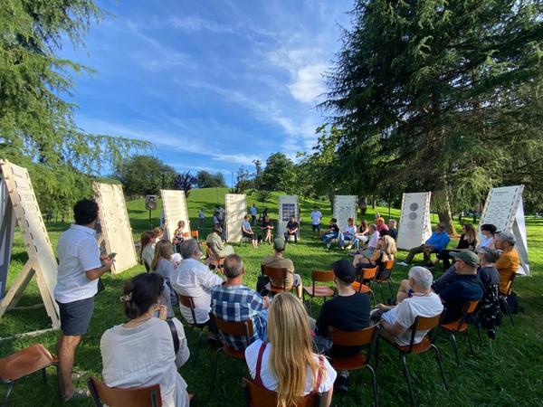 B ajo los árboles del jardín del Casino de la Exposición , dio comienzo la segunda sesión de la jornada ' Paisajes